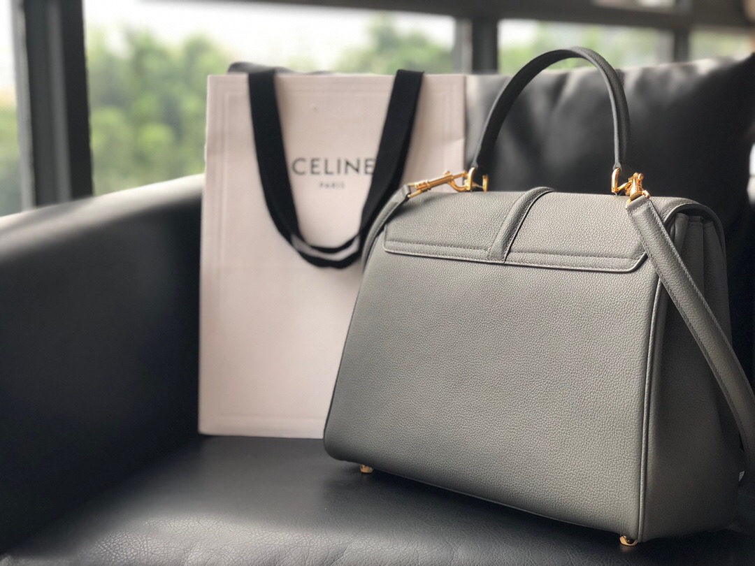 Celine 塞琳官网 中号手提包187373BF8.38NO 16 中号粒面黑色小牛皮手袋