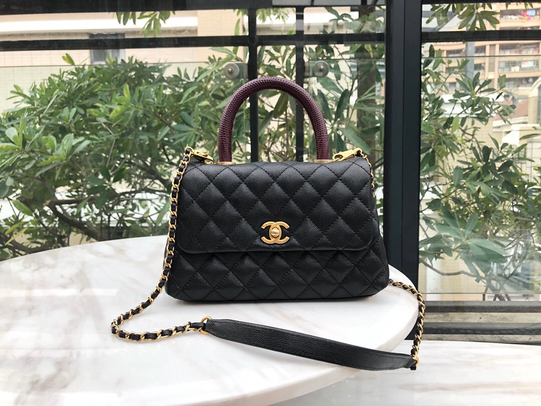 香奈儿口盖包配手柄Chanel coco handle bag 中号酒红色 鱼子酱牛皮 手堤包
