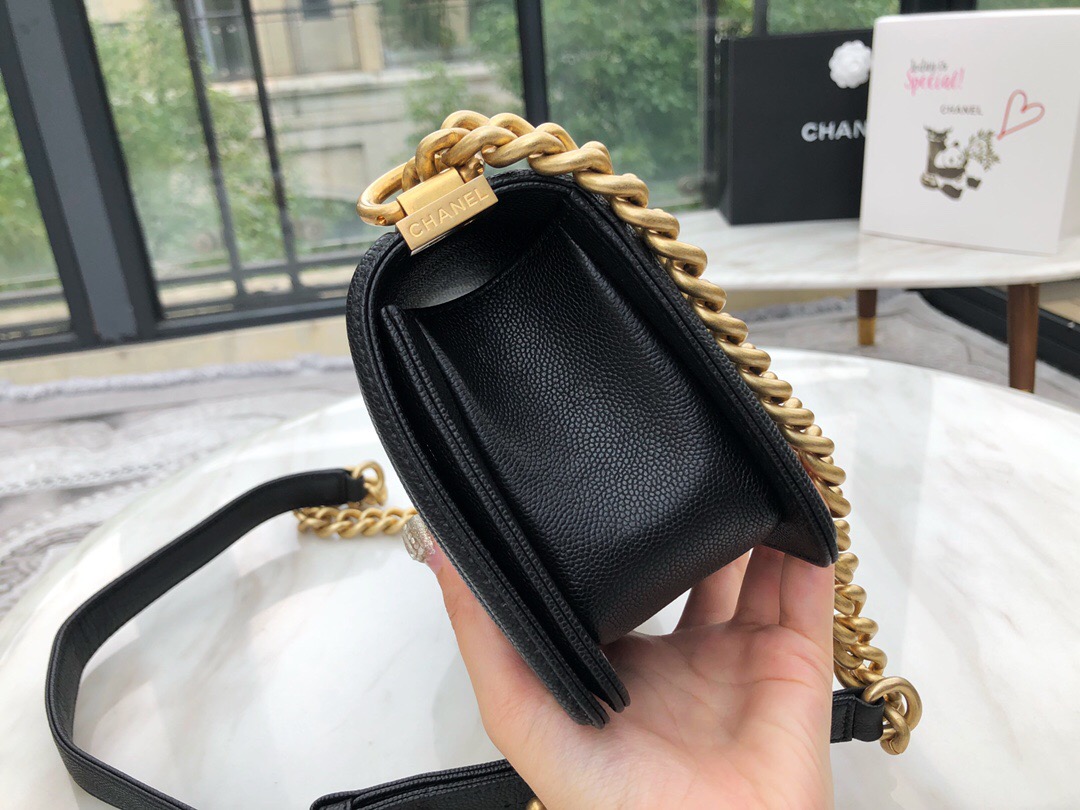 chanel香奈儿官网 水洗胎牛皮 Leboy小号黑色磨砂金